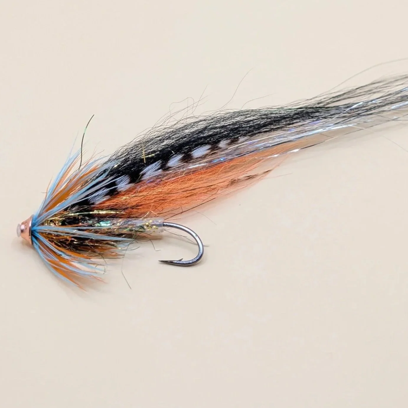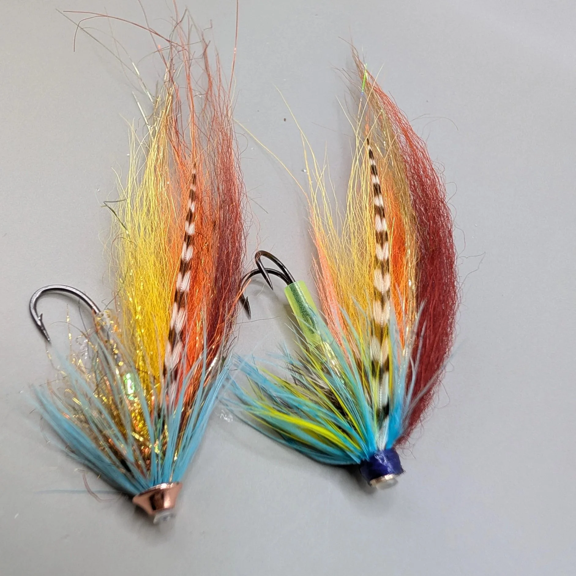 I’ve been tying a few Intruder style flies for Chile and Patagonia recently with trailing “stinger” hooks. Some folks swear by them for increased hookups . This lot are for Chinook or King Salmon. I love tying for far flung places. These big flies are fished with Skagit setups, big rods and very fast sinking tips. Not for the faint hearted!